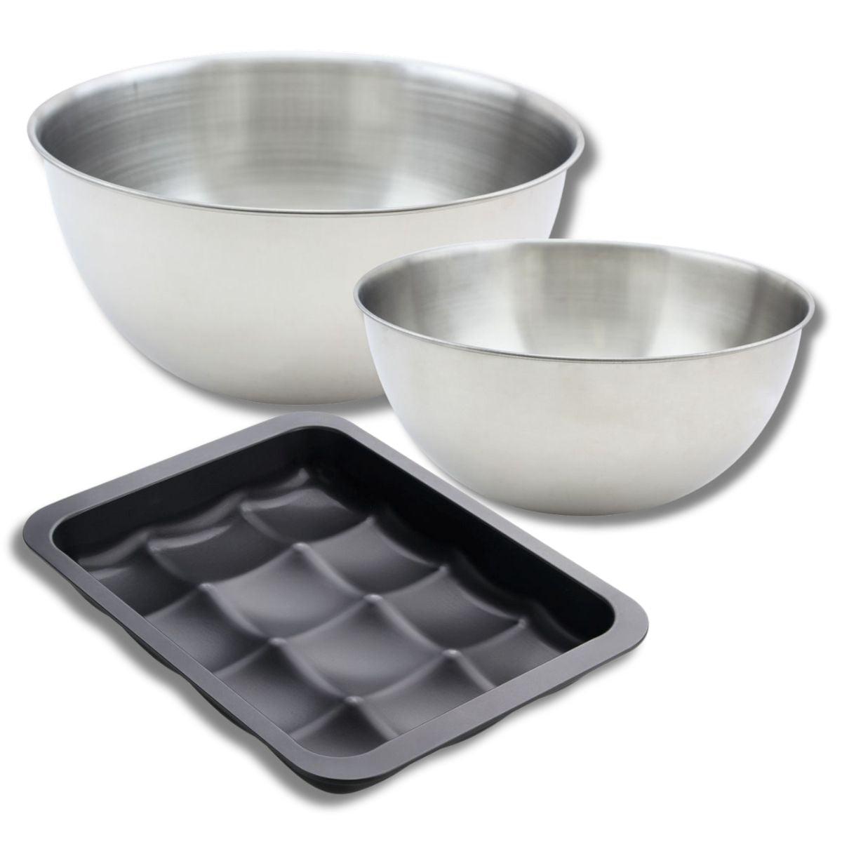 Lot avec 1 Moule 12 mini pains 36 x 27 cm, 1 spatule Zenker et 2 bols à mixer en inox Fackelmann