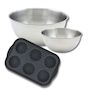 Lot avec 1 Moule 6 tartelettes en fibre de verre, 1 spatule Zenker et 2 bols à mixer en inox Fackelmann