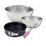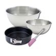 - DESCRIPTION: Ensemble complet pour pâtisserie, comprenant un moule à charnière de 26 cm, deux bols inox de 25 et 20,5 cm, et une spatule de 25 cm