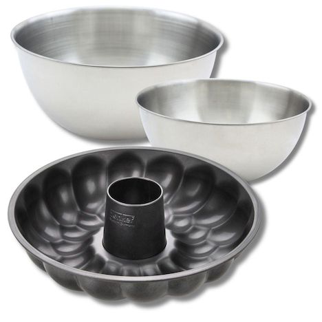 Lot avec 1 moule à pain cheminée, 1 spatule Zenker et 2 bols à mixer en inox Fackelmann