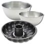Ce lot d'ustensiles de pâtisserie inclut un moule à pain avec cheminée de 32 cm de Zenker, idéal pour réaliser pains, brioches et gâteaux maison. Accompagné de deux bols à mixer en inox de 25 cm et 20,5 cm de Fackelmann, ces récipients sont parfaits pour mélanger vos préparations. La spatule en sili