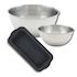 Lot comprenant 1 Moule à cake en silicone fibre de verre, 1 spatule Zenker et 2 bols à mixer en inox Fackelmann