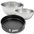 Lot comprenant 1 Moule à manqué 30 cm, 1 spatule Zenker et 2 bols à mixer en inox Fackelmann