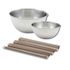 - DESCRIPTION: Cet ensemble comprend un moule à baguette de 38x25 cm, deux bols à mixer en inox de 25 cm et 20,5 cm, et une spatule de 25 cm, tous conçus pour faciliter vos préparations culinaires