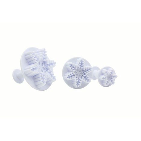 Ce lot comprend trois emporte-pièces de pâtisserie avec un poussoir. Ce type d'emporte-pièces est fréquemment utilisé pour créer des décors en pâte à sucre ou en pâte d'amandes. Dans ce lot d'emporte-pièce il y a trois emporte-pièces poussoir en forme de flocon de neige. Ils sont tous de tailles différentes, ce qui vous permet de créer du relief en superposant les flocons découpés. Faites de magnifiques décors sur vos gâteaux, bûche de Noël et pâtisseries grâce à ces emporte-pièces à motif flocon de neige.