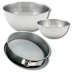 Set à pâtisserie avec 1 Moule à charnière rond 28 cm à fond plat, 1 spatule Zenker et 2 bols à mixer en inox Fackelmann