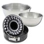 Set avec 1 Moule à manqué et à savarin 28 cm, 1 spatule Zenker et 2 bols à mixer en inox Fackelmann