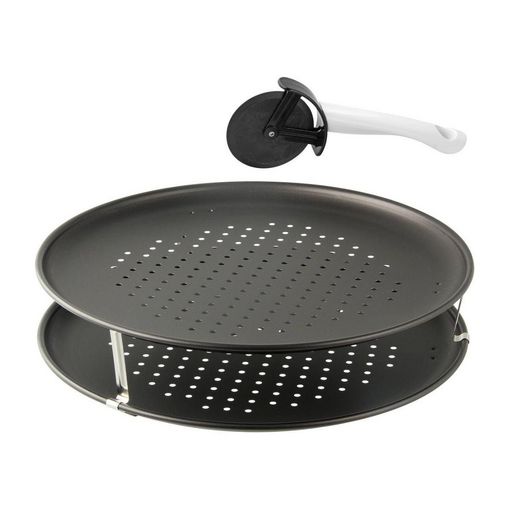- Zenker vous propose ce set de deux plaques à pizza perforées ainsi qu'une roulette à pizza afin de cuire deux pizzas en même temps dans votre four à l'occasion d'une pizza party entre amis