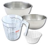 - DESCRIPTION: Set à pâtisserie avec 30 grands moules à muffins blancs, 2 bols à mixer inox de 25 et 20,5 cm, verre mesureur 1L, spatule en silicone de 25 cm