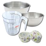 - COMPOSITION: Moules papier, faits en UE, bols acier inox, verre doseur en plastique, spatule silicone et plastique