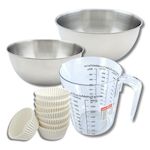 - COMPOSITION: Moules papier FSC ™ faits en UE, bols acier inox, verre doseur en plastique, spatule silicone et plastique