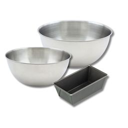 - DESCRIPTION: Set à pâtisserie avec 1 mini moule à cake 16 cm Zenker Spécial Mini, 2 bols à mixer en inox de 25 cm et 20,5 cm, et 1 spatule en silicone de 25 cm