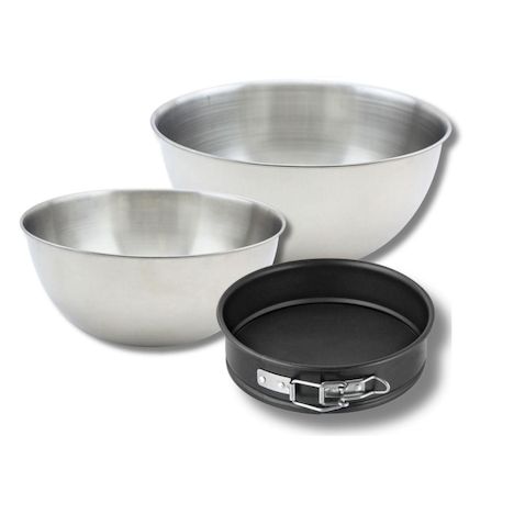 - DESCRIPTION: Set à pâtisserie avec 1 mini moule à manqué 16 cm Zenker Spécial Mini, 2 bols à mixer en inox de 25 cm et 20,5 cm, et 1 spatule en silicone de 25 cm