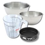 - DESCRIPTION: Set à pâtisserie avec un mini moule à manqué de 16 cm antiadhésif Zenker, deux bols inox (25 cm et 20,5 cm), une spatule en silicone 25 cm, et un verre doseur 1L