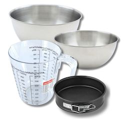 Set pâtisserie avec mini moule à manqué 16 cm, 2 bols à mixer, verre mesureur et spatule Zenker