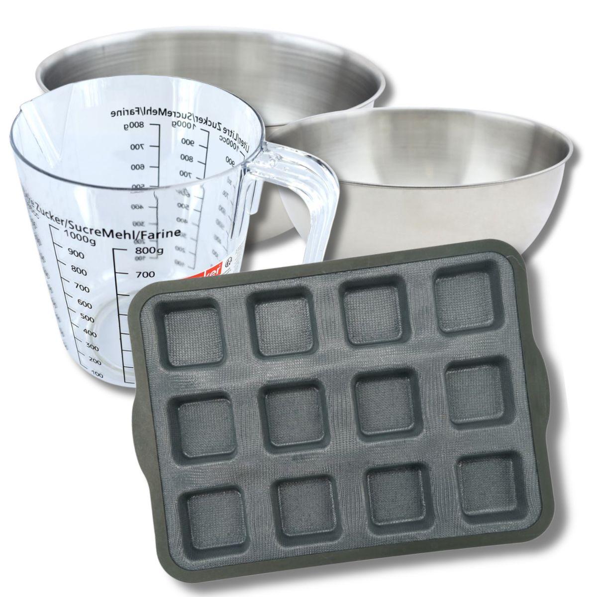 Set pâtisserie avec moule à 12 brownies, 2 bols à mixer, verre mesureur et spatule Zenker