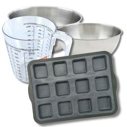- DESCRIPTION: Ensemble comprenant un moule à brownies en silicone, deux bols inox, une spatule en silicone et un verre doseur , parfait pour toutes vos préparations culinaires