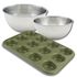 Set pâtisserie avec moule à 12 muffins, 2 bols à mixer et spatule Zenker