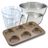 - DESCRIPTION: Ensemble de pâtisserie incluant un moule à petits pains, deux bols à mixer en inox, une spatule en silicone et un verre doseur, parfait pour vos recettes