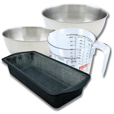 DESCRIPTION: Ensemble d'ustensiles incluant un moule à cake Zenker, deux bols à mixer Fackelmann en inox, une spatule Zenker et un verre doseur ZenkerPETIT +: Chaque ustensile a été conçu pour optimiser votre expérience en cuisine, garantissant qualité et praticitéCOMPOSITION: Silicone fibre de verr