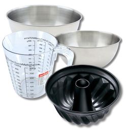 Set pâtisserie avec moule à kouglof 22 cm, 2 bols à mixer, verre mesureur et spatule Zenker