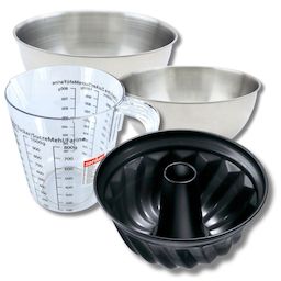 Set pâtisserie avec moule à kouglof 25 cm, 2 bols à mixer, verre mesureur et spatule Zenker