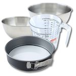 Set pâtisserie avec moule à manqué de 26 cm acier, 2 bols à mixer, verre mesureur et spatule Zenker