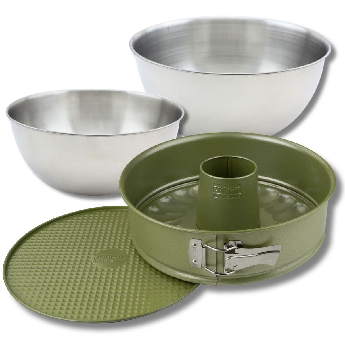 Set pâtisserie avec moule à manqué et à savarin 26 cm, 2 bols à mixer et spatule Zenker