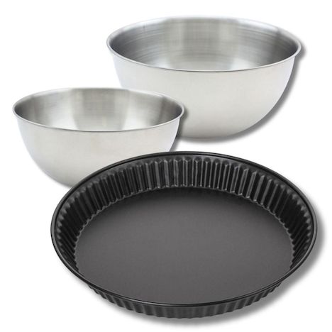 - DESCRIPTION: Set à pâtisserie avec 1 moule à quiche Lorraine 30 cm Zenker Spécial Countries, 2 bols à mixer en inox de 25 cm et 20,5 cm, et 1 spatule en silicone de 25 cm