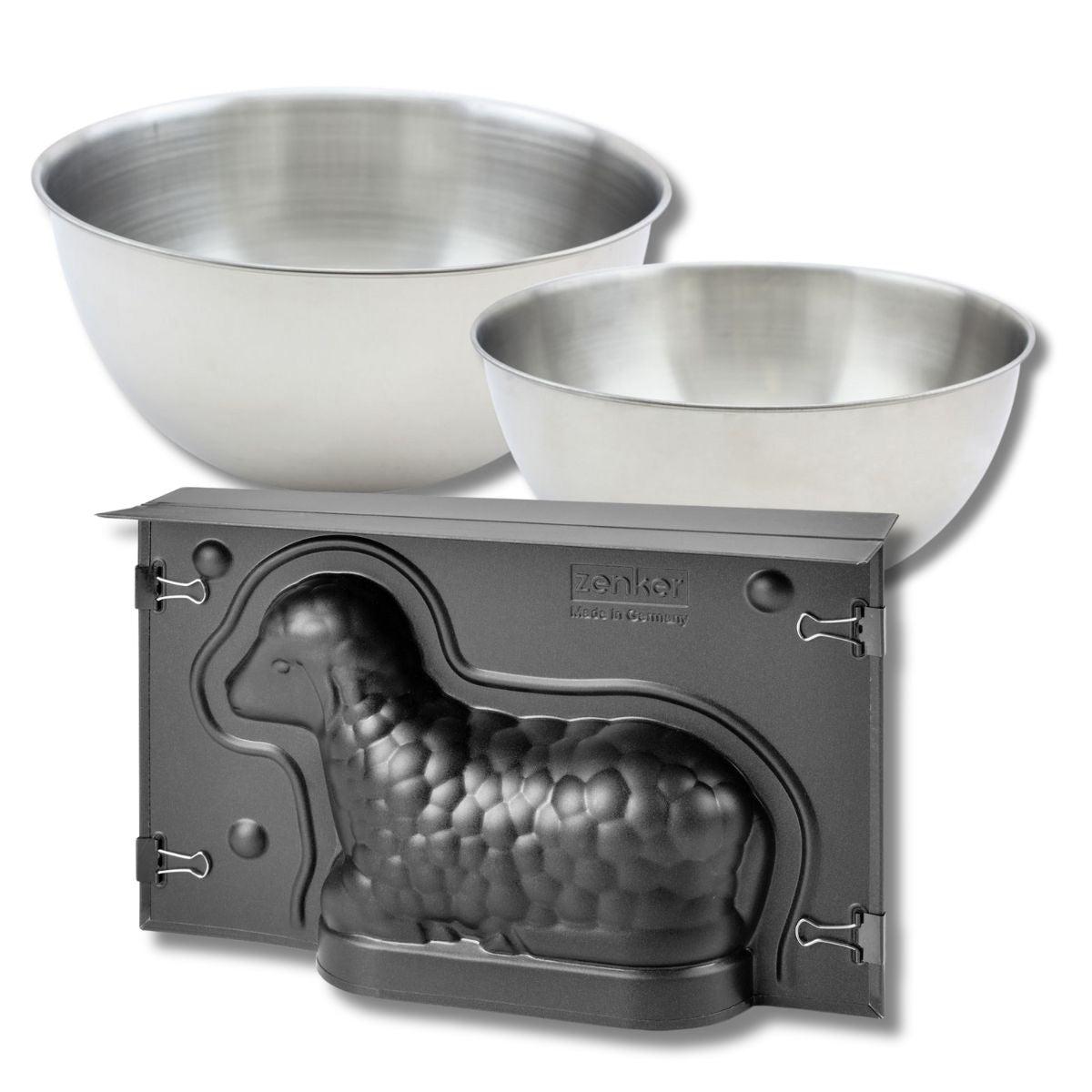 - DESCRIPTION: Set à pâtisserie avec 1 moule 3D en forme d'agneau de Pâques de 700 ml Zenker Spécial Season, 2 bols à mixer en inox de 25 cm et 20,5 cm, et 1 spatule en silicone de 25 cm