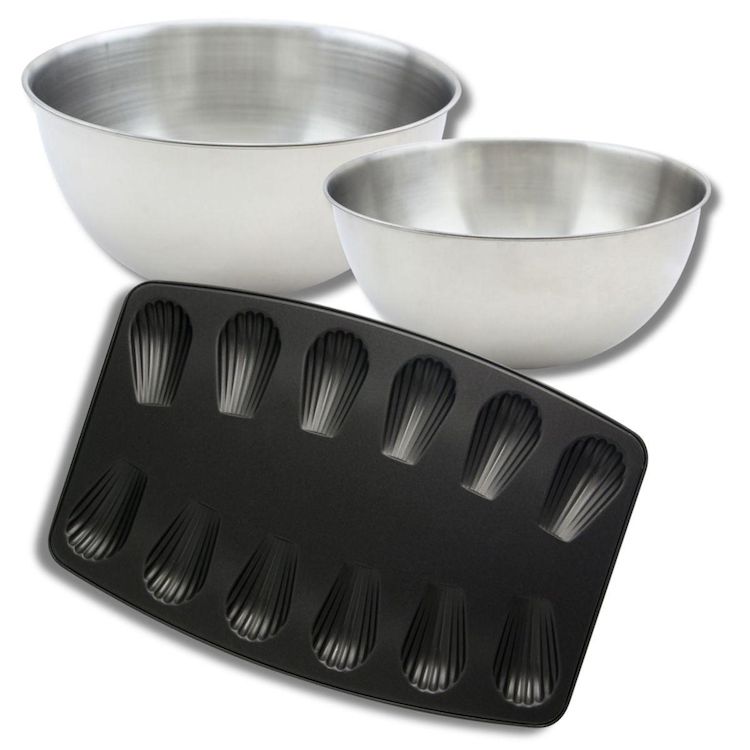 Set pâtisserie moule à 12 madeleines, 2 bols à mixer et 1 spatule Zenker