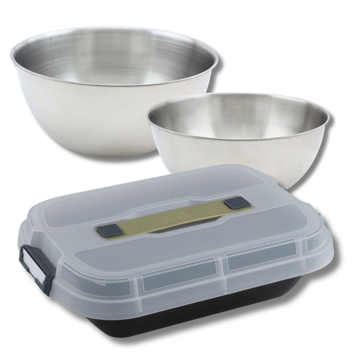 Set pâtisserie moule à gâteaux 34 x 24 cm avec couvercle, 2 bols à mixer et 1 spatule Zenker