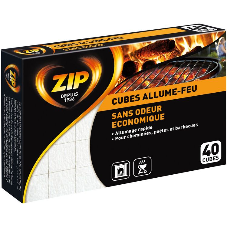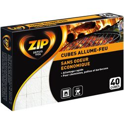 Disposez 1 ou 2 cubes allume-feu Zip avec votre combustible. Pour les combustibles difficiles à allumer, utilisez quelques cubes supplémentaires.