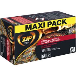 L allume feux est emballé dans un sachet . Cela permet de ne pas avoir les doigts qui sentent le pétrole. Cela permet aussi de ne pas perdre au sol des petits bouts qui s effritent et qui risque d être inhalé par des enfants qui ramassent tout au sol. Par contre : comme la lessive , ne pas laisser à la portée des enfants : mettre en hauteur dans un endroit sécurisé.