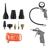 Compatible avec la plupart des compresseurs du marché. 11 accessoires inclus : Gonfleur de pneus Tube spiralé avec accou-plement rapide Pistolet à air comprimé 8 busses avec différents dia-mètres. Poids Poids brut kg: 0.95 Poids net kg: 0.90 E