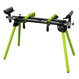 Table de travail universelle, peut être utilisée avec des scies à on-glets, avec petites ponceuses, perceuses à colonne, meuleuses, etc. Design compact et facile à trans-porter, entièrement pliable Les deux appuis latéraux peuvent être ajustés en hauteur Hauteur réglable de 810 à 910 mm Largeur de