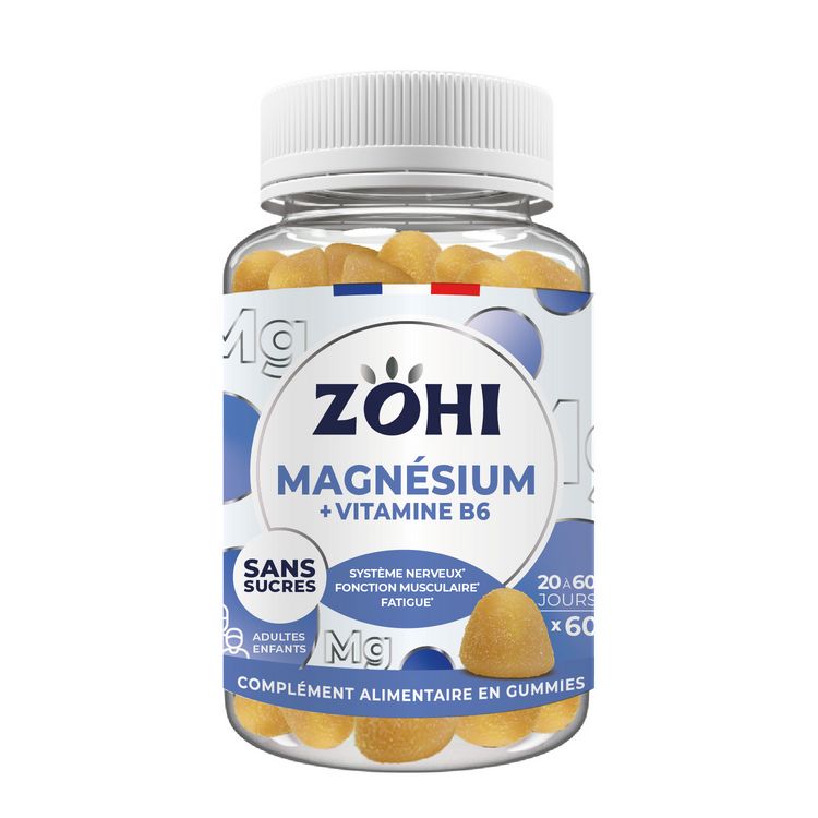 Découvrez Zohi, la nouvelle marque de compléments alimentaires qui allie plaisir et efficacité ! Une gamme de gummies sans sucres, aux bons goûts de fruits, Zohi est fabriquée en France, sans colorants artificiels. Zohi Magnésium et Vitamine B6: Ce sont des gummies 2 en 1 au goût d'ananas et de citron avec une formule triple action qui contribue au bon fonctionnement du système nerveux et des muscles et qui aide à réduire la fatigue.