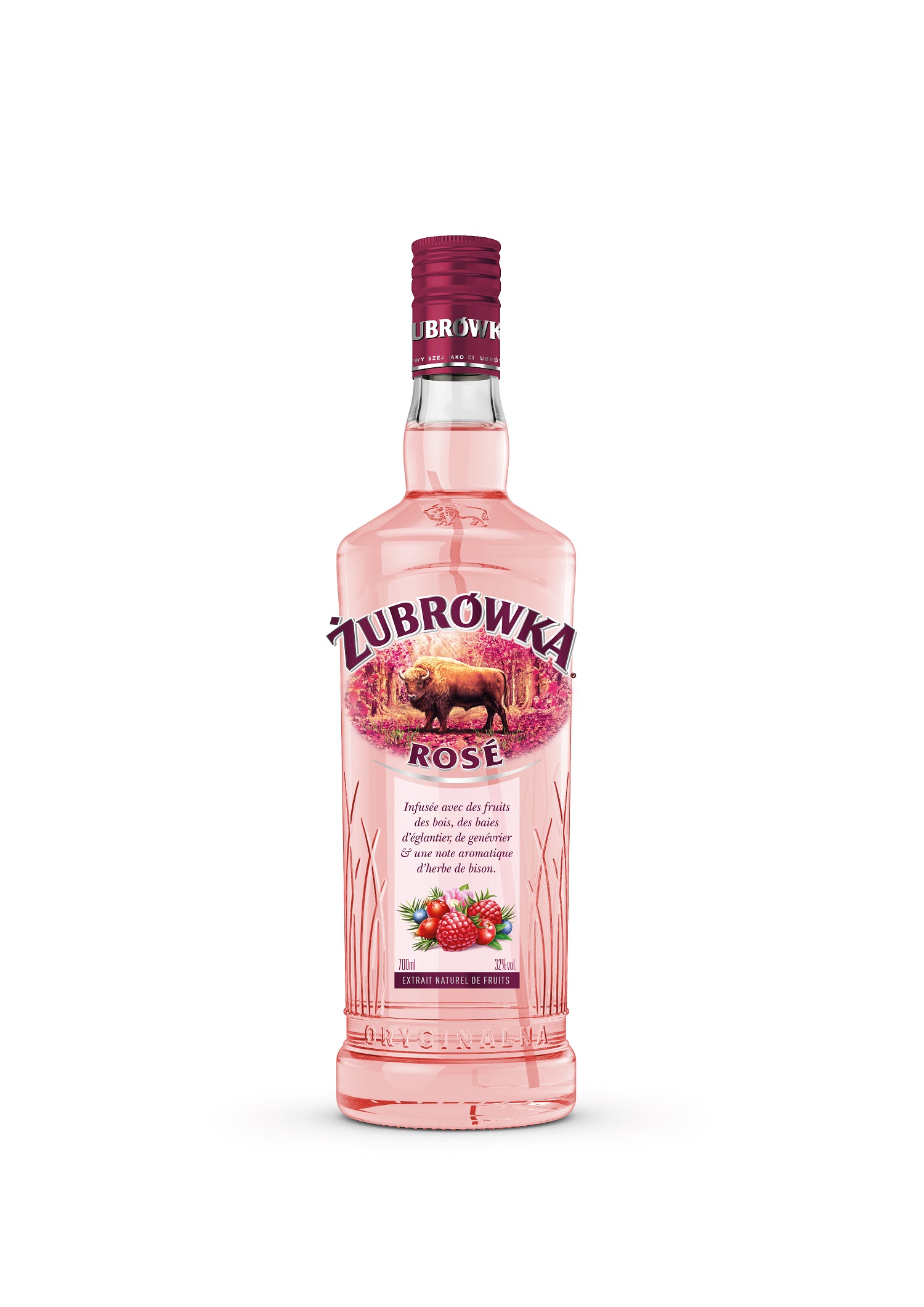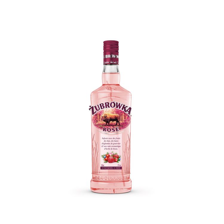 Zubrowka Rosé est une boisson spiritueuse rafraichissante, délicatement infusée aux fruits des bois, baies d'églantier et de genévrier. Inspirée de la recette phare de Zubrowka, ses 6 distillations, sa filtration au charbon et l'ajout, à la main, d'une authentique herbe de bison lui confèrent un goût unique. Moins alcoolisée qu'une vodka traditionnelle, Żubrówka Rosé est idéale pour une dégustation en cocktail