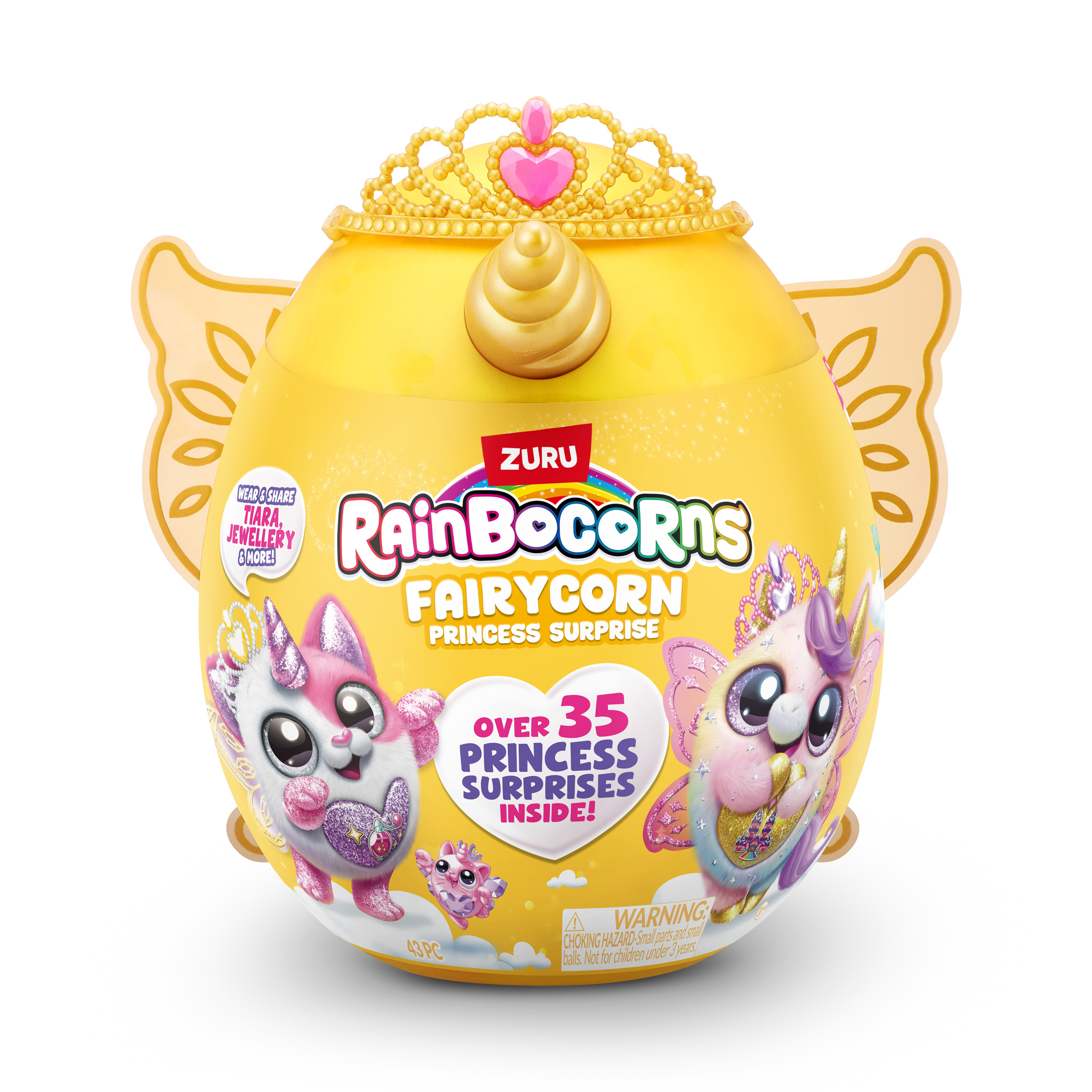 Des adorables peluches princesses fées arrivent dans le royaume! Découvre plus de 35 surprises a l'intérieur, dont une tiare de princesse et une baguette magique que tu peux aussi porter pour te transformer a ton tour en princesse fée! Il y a 6 princesses Fairycorn a collectionner.