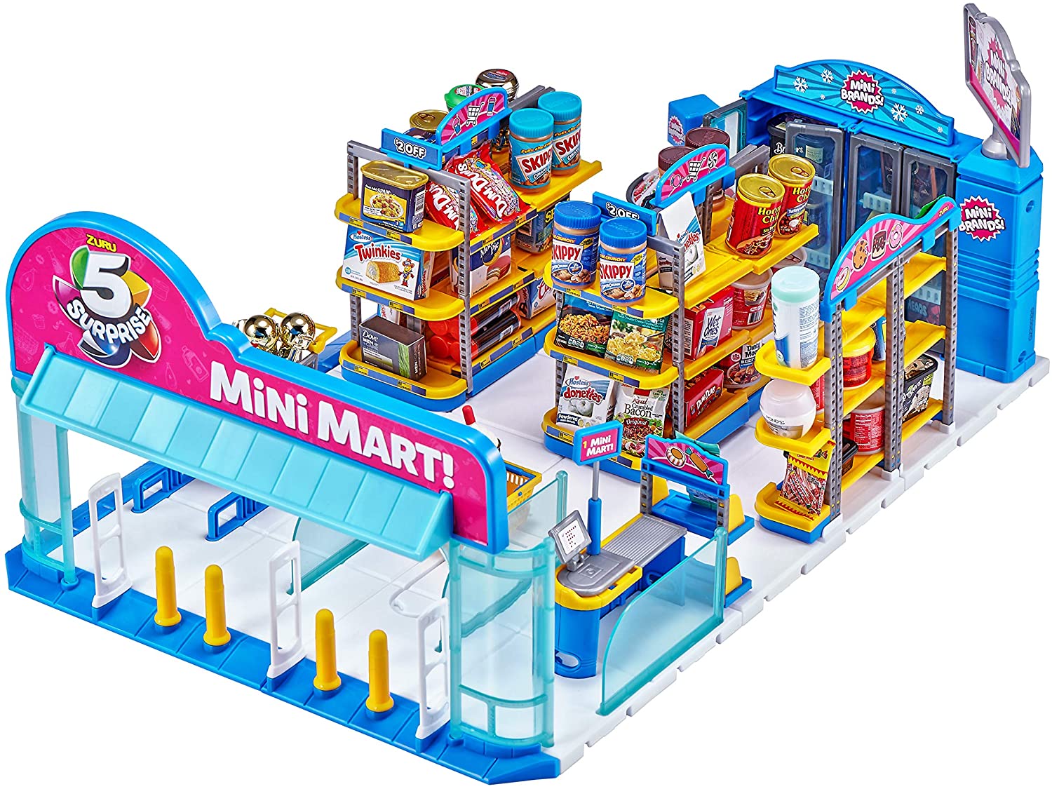 Mini Brands c'est 70 grandes Marques du quotidien en mini reproduction. Construis ton propre supermarché avec tes 27 accessoires ! Vitrine, étagères, congélateur, caisse enregistreuse et 5 mini-miniatures inclus. Effets sonores. Collectionnes vite les différentes minis-marques !