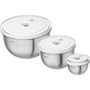Boite Descriptif Set de 3 bols sous vide ZWILLING FRESH & SAVE (S/M/L). Préparez, servez et conservez vos aliments jusqu'à 5x plus longtemps*. Empilables, hermétiques, compatibles lave-vaisselle et congélateur. Idéal pour une cuisine organisée au quotidien. *Vs conservation altique. Colo
