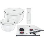 | Composition | 2 bols en verre (tailles M et L) avec couvercles sous vide, 2 sacs sous vide (tailles S et M) et une pompe rechargeable. | |