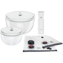 | Descriptif | Bols sous vide ZWILLING FRESH & SAVE : fraîcheur, simplicité, polyvalence. Conservez vos aliments jusqu'à 5x plus longtemps* grâce à la pompe sous vide. Verre résistant, passe au four, micro-ondes, lave-vaisselle, congélateur. Set avec 2 bols, 2 sacs et pompe. *Vs conservation sans vide. | |