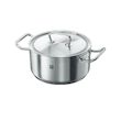 Découvrez la casserole polyvalente Zwilling de 24 cm, idéale pour rôtir, cuire à la vapeur et mijoter. Elle offre une capacité de 5,4 litres et est équipée d'un fond Sigma Classic pour une cuisson efficace et uniforme. Fabriquée en inox 18/10 et aluminium avec une finition anti-rayures, cette casser