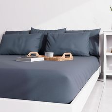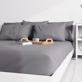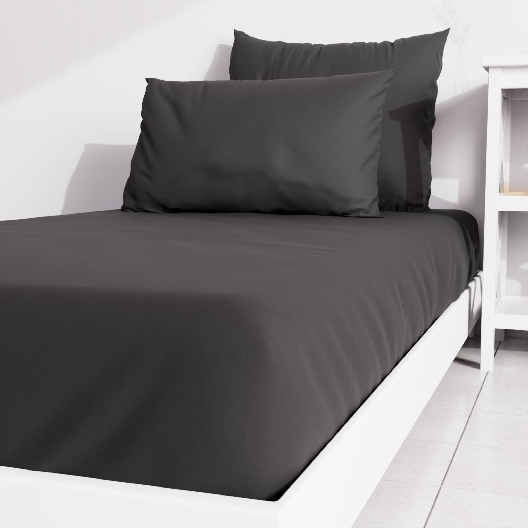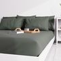 Drap housse uni au colori très tendance. Entretien facile, repassage inutile et belle tenue des couleurs. Finition: Bonnet de 25 cm. Composition: 55% polyester, 45% coton. Entretien: Lavage en machine à 40 degrès.